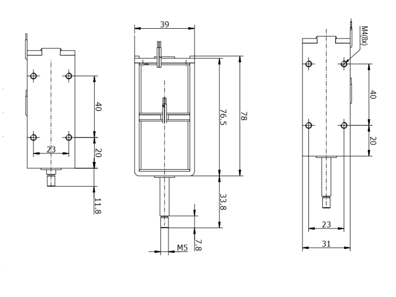 Bistabiler linearmagnet in Rahmenbauweise. Durch die zwei Lagen in denen er stromlos verharren kann ist er ideal für Verriegelungen die keine feste Stromquelle haben.