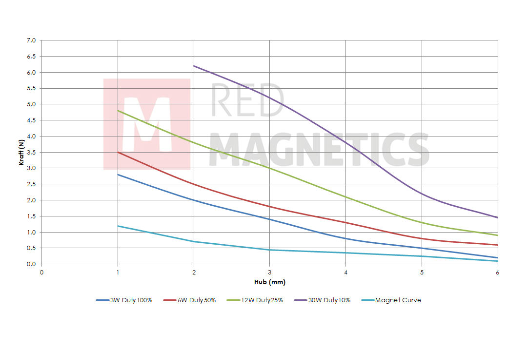 Ein integrierter Permanentmagnet hält den Tauchkern in eingefahrenem Zustand. Leicht bistabile Eigenschaften erhält er durch eine Rückholfeder.